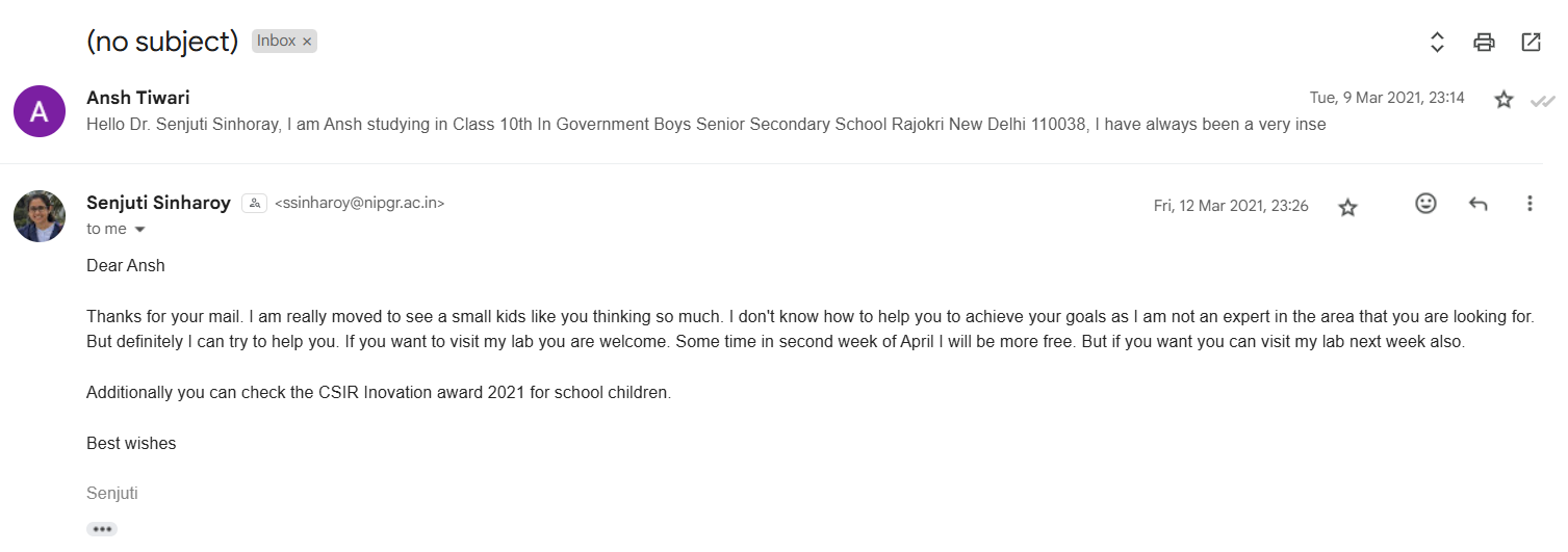 - (got this after a cold email in sophomore year) Shadowed Dr. Senjuti Sinharoy for a couple of weeks, learned a lot about the lab's work on plant genomics even though I didn't contribute much conceptually.